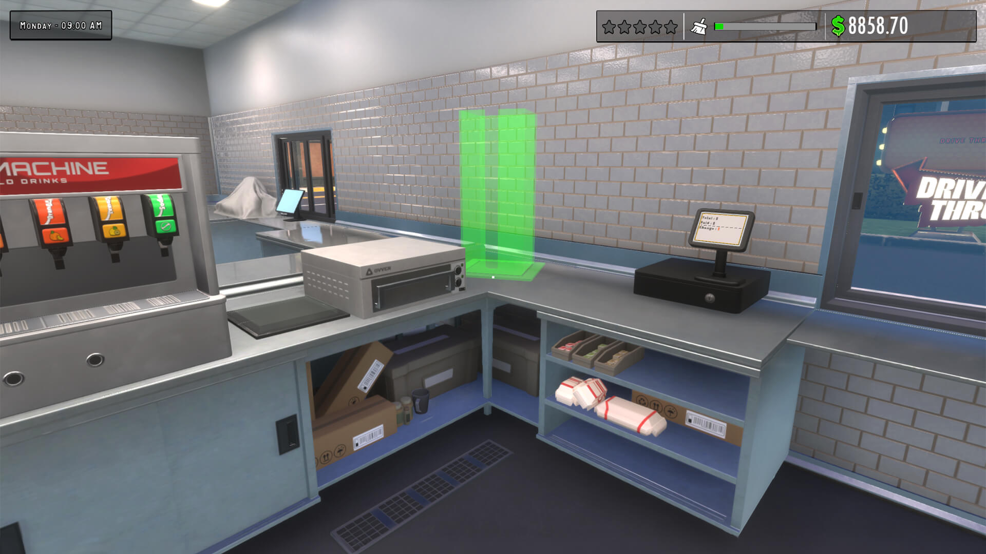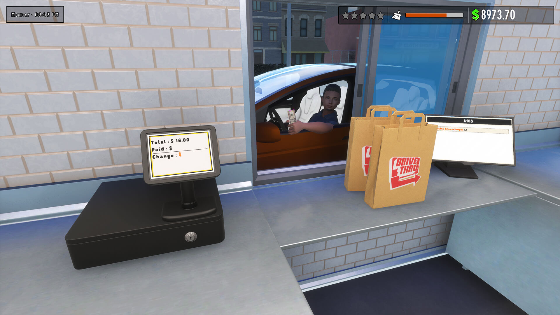 Drive Thru is a first-person perspective simulation game where players interact directly with customers to take their orders, prepare food and beverages in the kitchen, and handle payments. Your goal is to attract more customers and improve your restaurant's efficiency by making strategic decisions to enhance customer satisfaction and grow your business.
